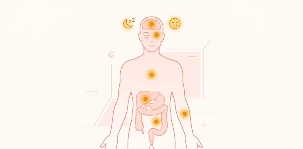 The gut microbiome — the 38 trillion microorganisms living in your digestive tract — does far more than digest food. According to a landmark review in Cell (2016), it regulates immune function, produces neurotransmitters (including ~90% of the body's serotonin), modulates inflammation, and communicates directly with the brain via the gut-brain axis. When this system is out of balance — a state clinically termed 'dysbiosis' — the effects ripple outward in ways that aren't obviously digestive.
